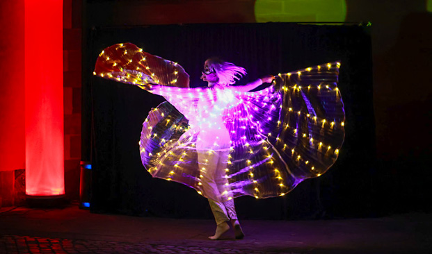 Eröffnet wurde die Nacht lautstark mit der Trommelgruppe Wadaiko Todoroki am Martin-Luther-Platz, bevor es an allen Orten um 20 Uhr mit dem Kernprogramm losging. Es waren vor allem Künstler/innen aus der Region am Start, aber auch einige überregional bekannte Interpreten und Gruppen - die weiteste Anreise hatten HATHORS aus der Schweiz. Vom Metal über ein Akkordeonorchester bis zum Kulturpreis-träger Jareem Willmore am Flügel reichte die musikalische Bandbreite, dazu begeisterten Comedian Ralf Winkelbeiner und Slam-Poet Michael Jakob, beeindruckten die Modern Dance-Formation TANZraum, das Improtheater Die Frischlinge und vieles mehr.